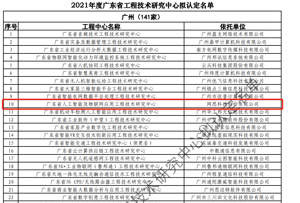 日前,广东省科技厅发布2021年度广东省工程技术研究中心名单。经过层层筛选、专家评审,依托雷速官网-雷速(中国)一站式服务官网 建设的“广东省人工智能及物联网应用工程技术研究中心”榜上有名。广东省工程技术研究中心主要依托省内行业、领域具有科技实力的、拥有一定规模以上创新型企业建设,部分依托高校和科研院所组建。工程中心旨在